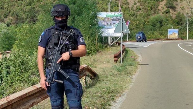 Kosovski policajac čuva cestu koja vodi prema Banjskoj nakon incidenta u nedjelju