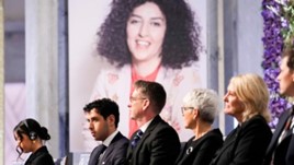 Narges Mohammadi je u nedelju u gradskoj većnici Osla dobila Nobelovu nagradu za mir. Nagrada je uručena njenoj deci Kiani i Aliju Rahmani jer se dobitnica nalazi u ozloglašenom zatvoru Evin u Teheranu.